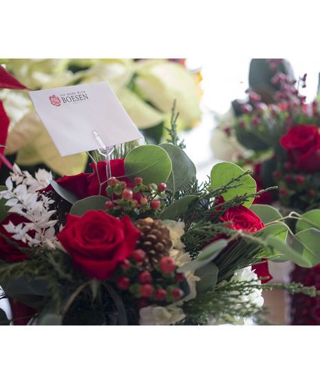 Ordering a signature Christmas by Boesen arrangement allows our designers to create a beautiful, unique arrangement. We will use the season's best available flowers in a price range that's comfortable for you. Mixed flowers and colors.